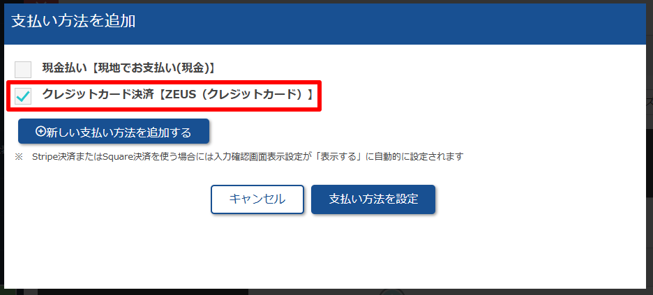支払方法の設定